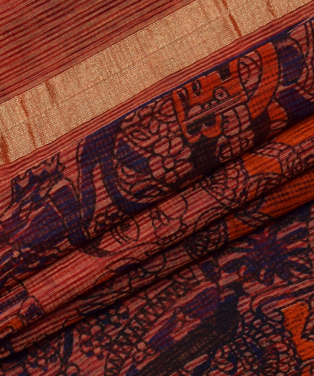 Baarat Print Orange Zari Border Cotton Kotadoria saree With Blouse