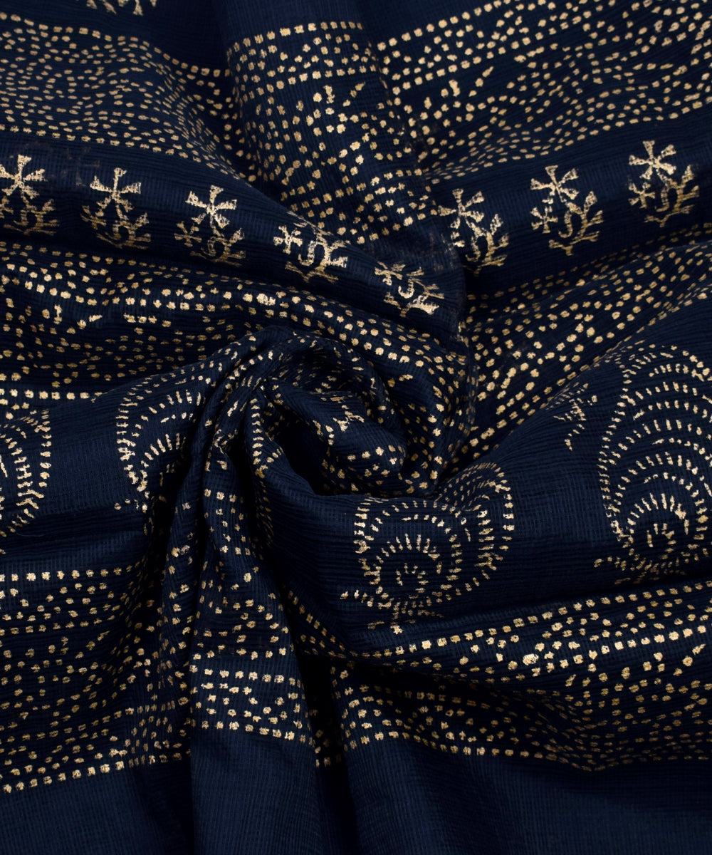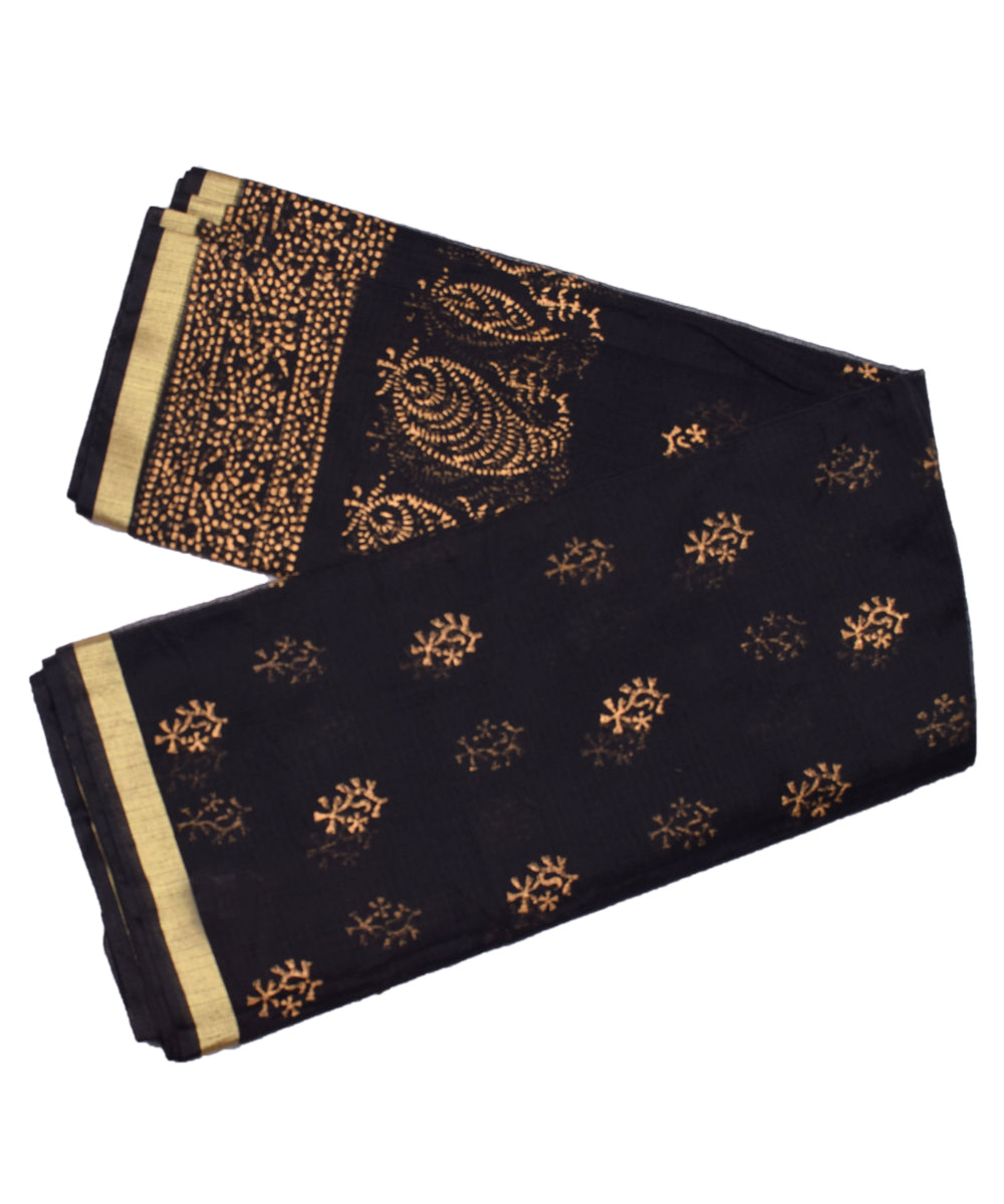 It is the Cotton Kotadoria Saree With Unique Golden Prints of Leaves.