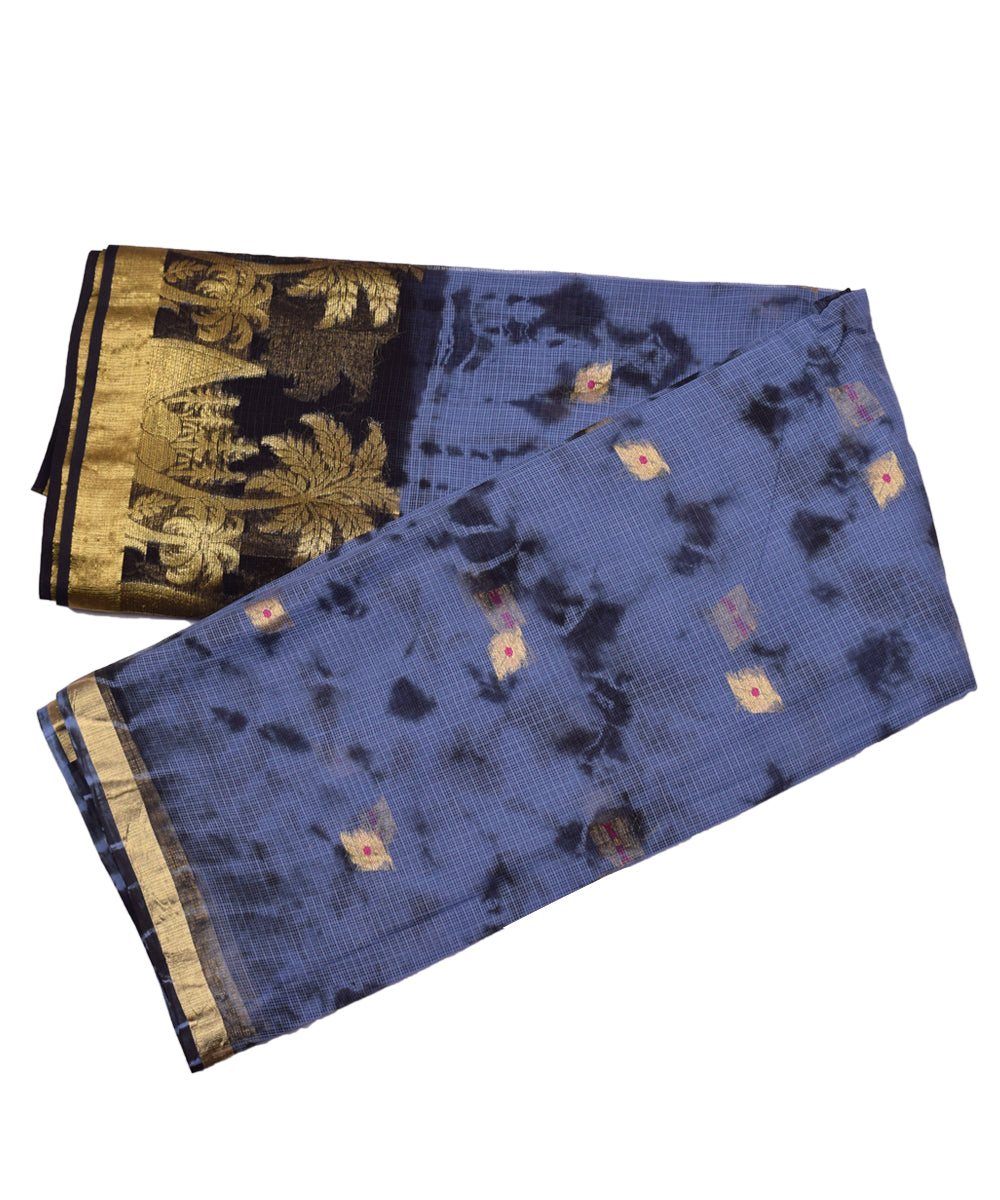 Blue Golden Work Zari Border KotaDoria Weaving Saree With Blouse