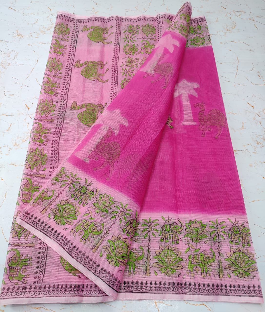 Blush Pink Refined KotaDoria Dye Block Printed Cotton Saree With Blouse
