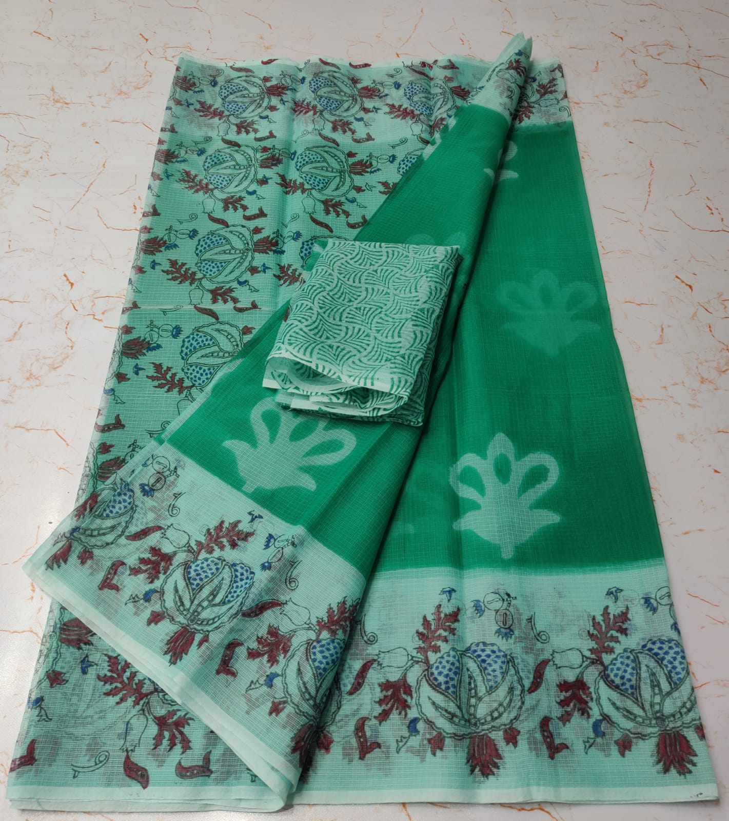 Castleton Green Dapper KotaDoria Dye Block Printed Cotton Saree With Blouse
