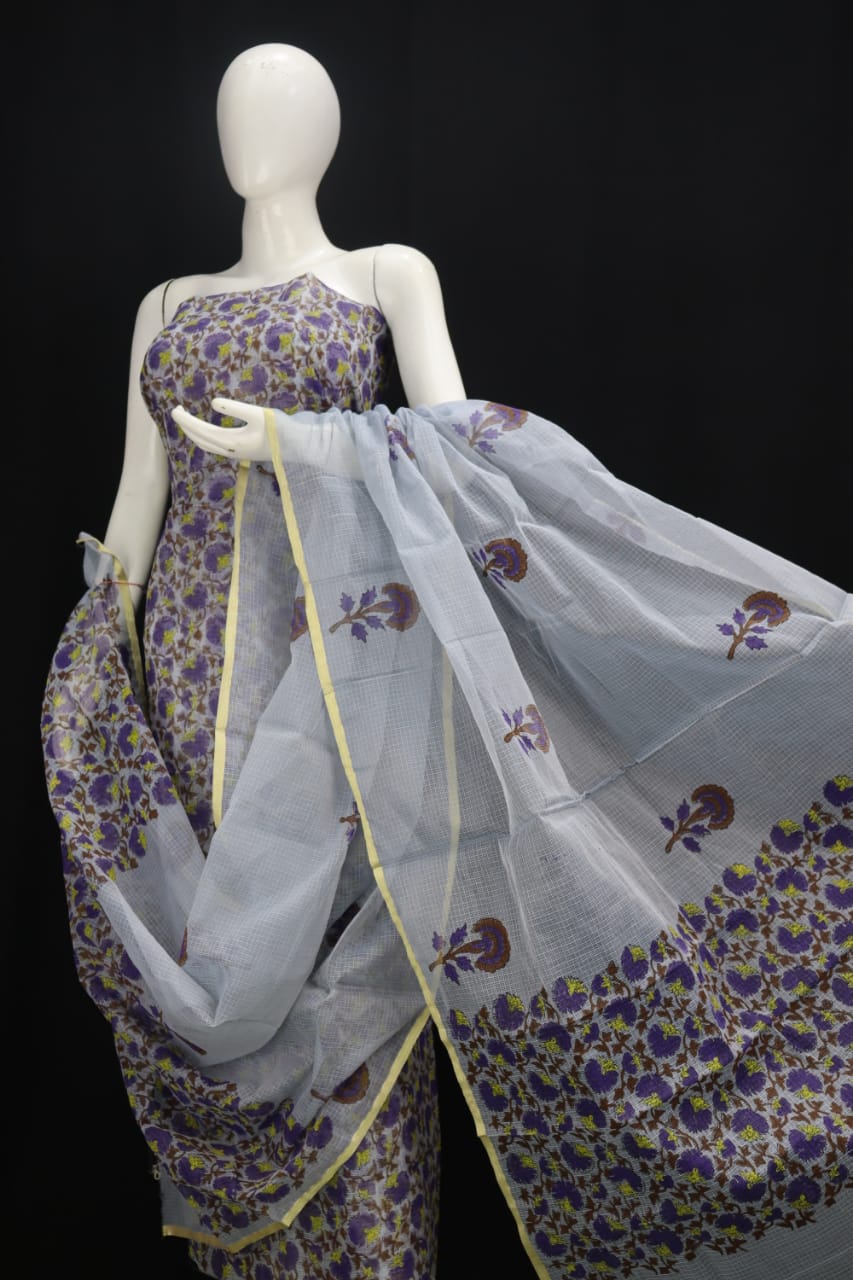 DESIGNER GREY FLOWER HAND BLOCK PRINT KOTA DORIA SUIT