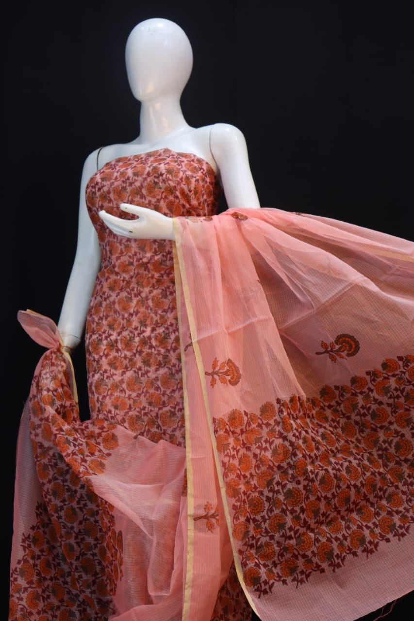 DESIGNER PASTEL FLOWER HAND BLOCK PRINT KOTA DORIA SUIT