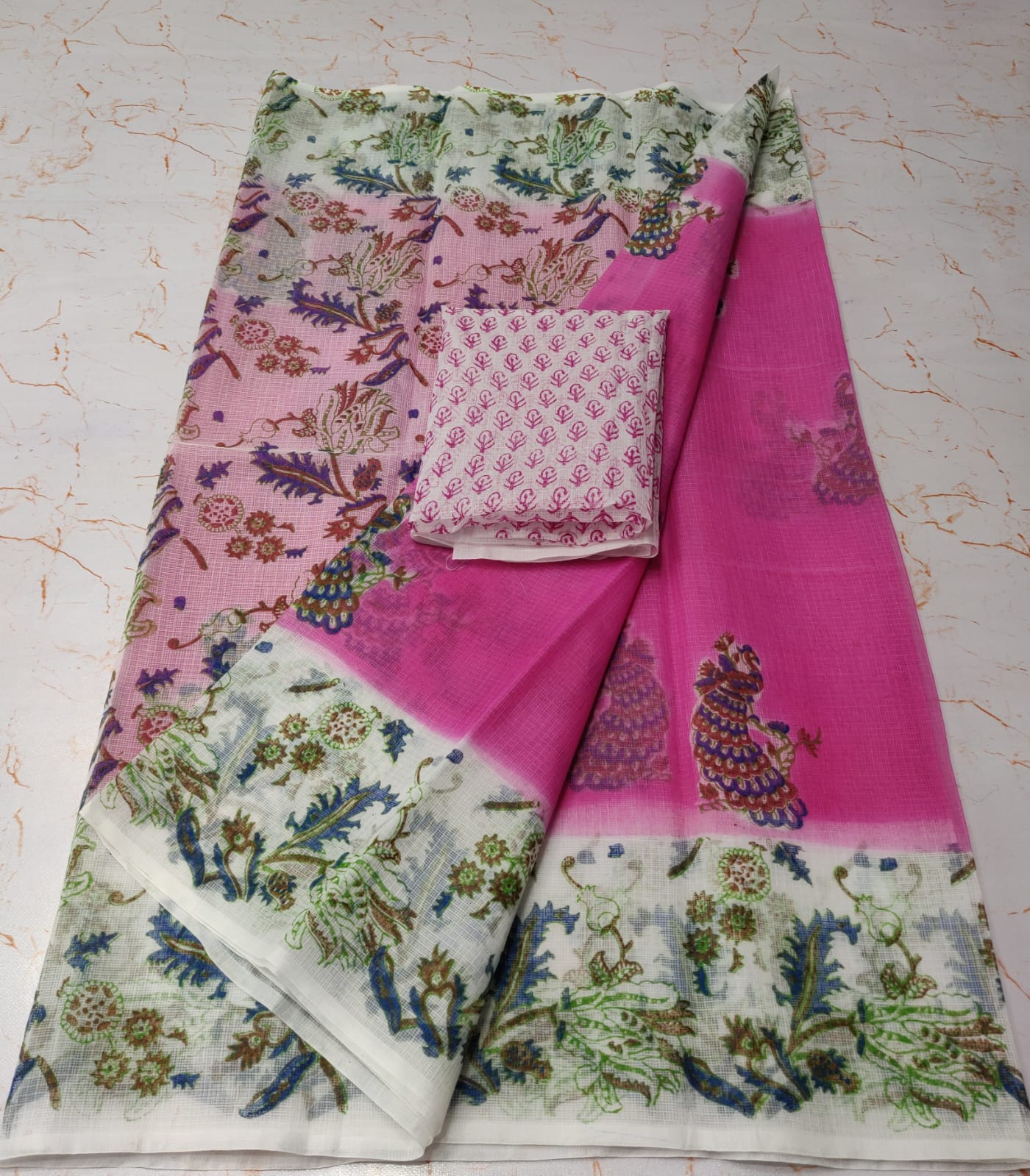 Kota Doria Block Print Saree.