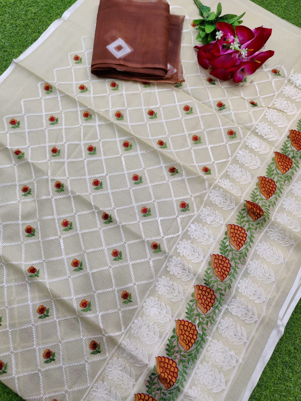 KOTA COTTON "CHICKENKARI EMBROIDERY" SAREE WITH BLOUSE