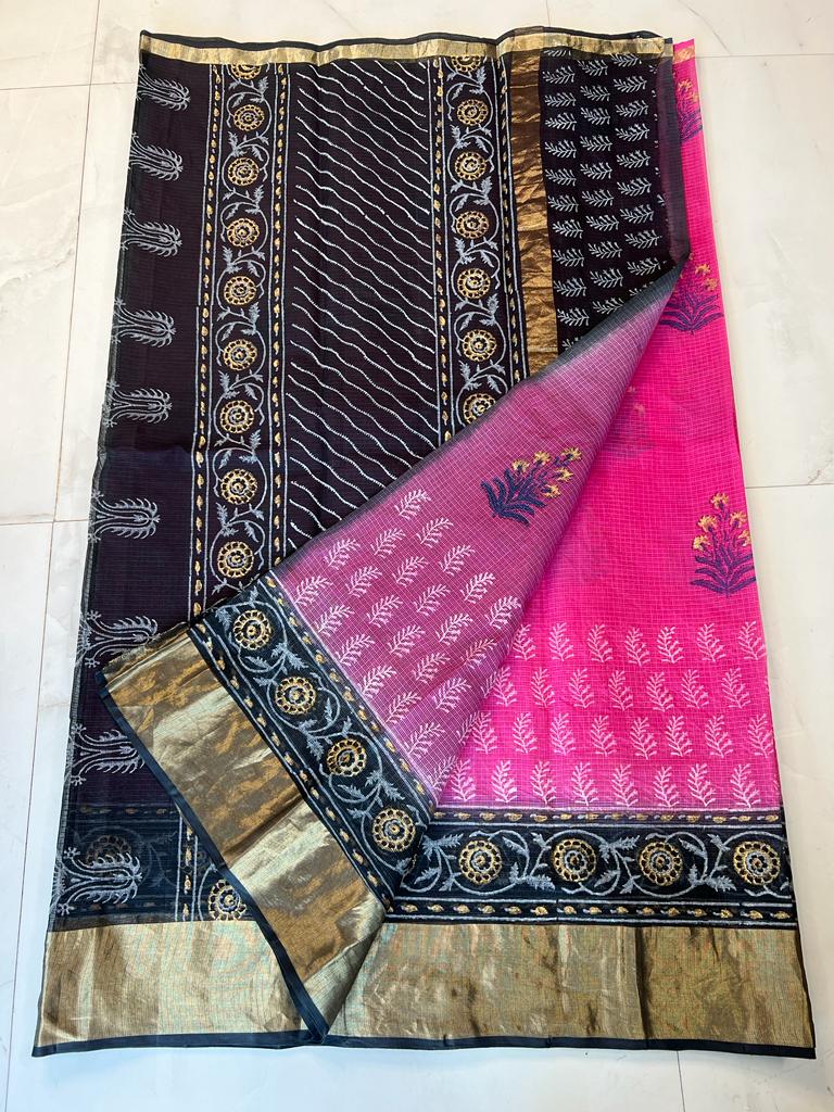 Pure Kota Doria Block Print Saree