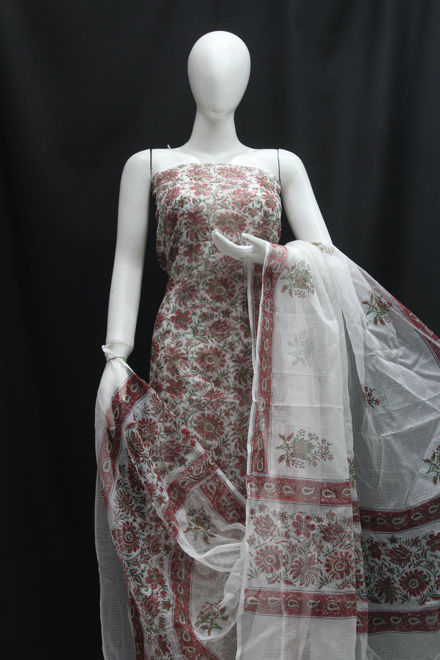 Royal Designer Handblock Printed Cotton Kota Doria un-stitched Suit With Dupatta