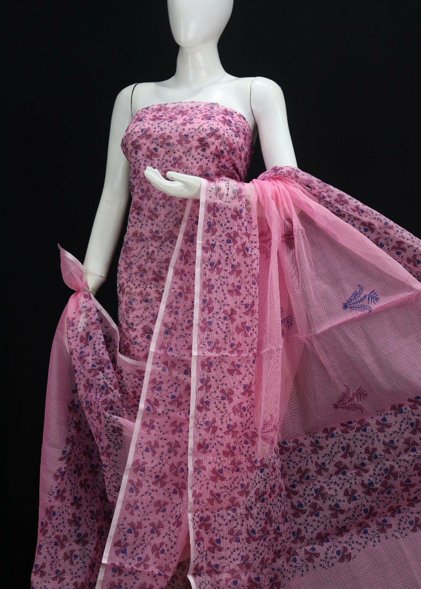 Royal Magenta Floral Handblock Printed Kota Doria Suit