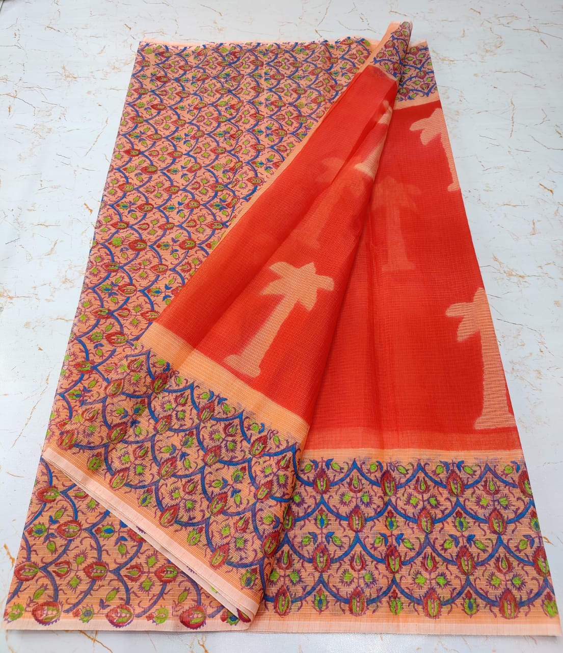 Kota Doria Block Print Saree.