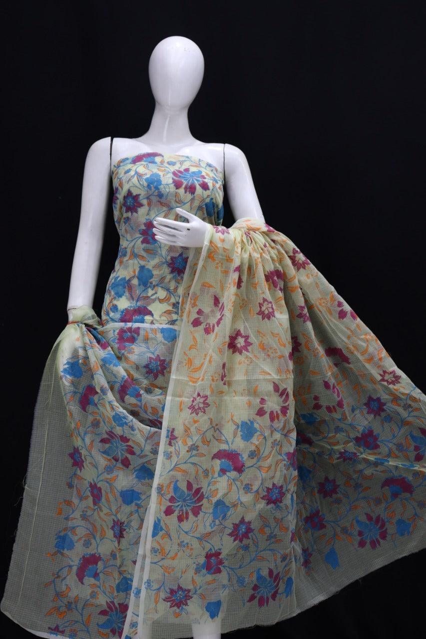 Traditionally Base Cluster Flower Printed Kota Doria Suit