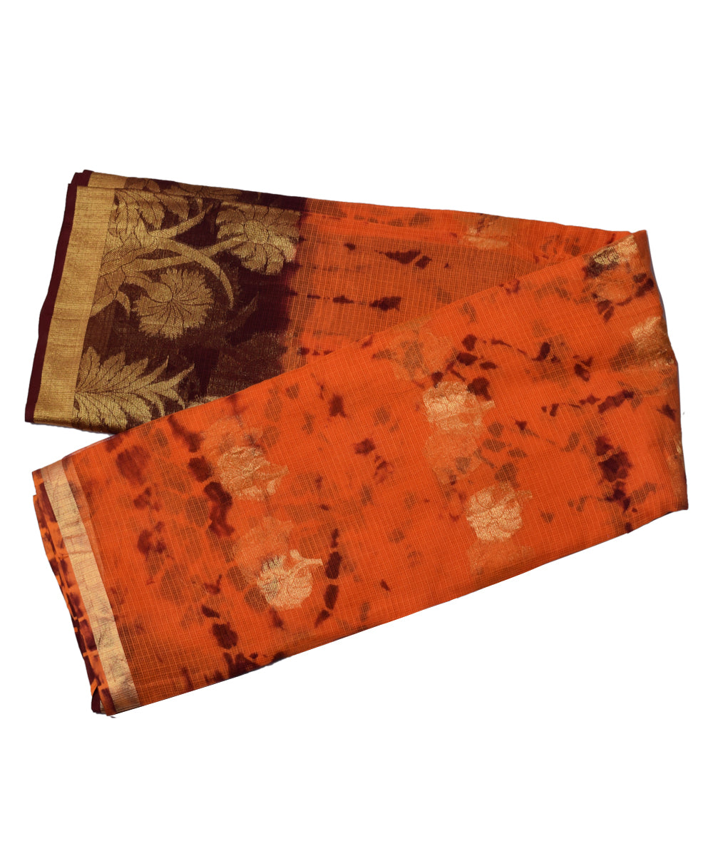 It is the Weaving Kotadoria Saree With Unique Golden Leaves.