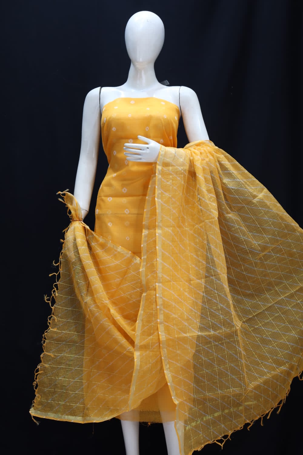 Yellow Dyed Pure Kota Doria Cotton Un-Stitched Suit With Dupatta
